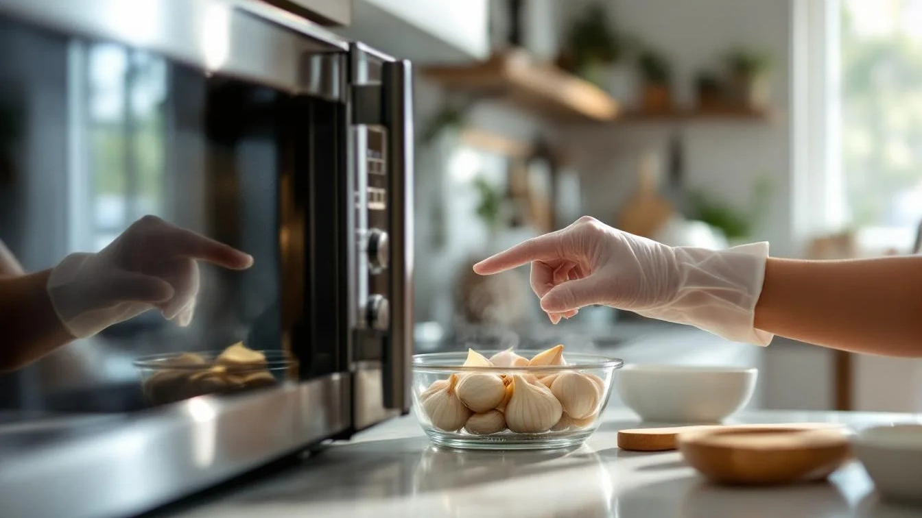 Představte si, že máte hlavu česneku v ruce. Místo abyste ji krájeli a pak se potýkali s ulpívajícími slupkami, stačí ji pouze umístit do mikrovlnné trouby. Než se nadějete, máte oloupaný česnek, aniž byste použili nůž.